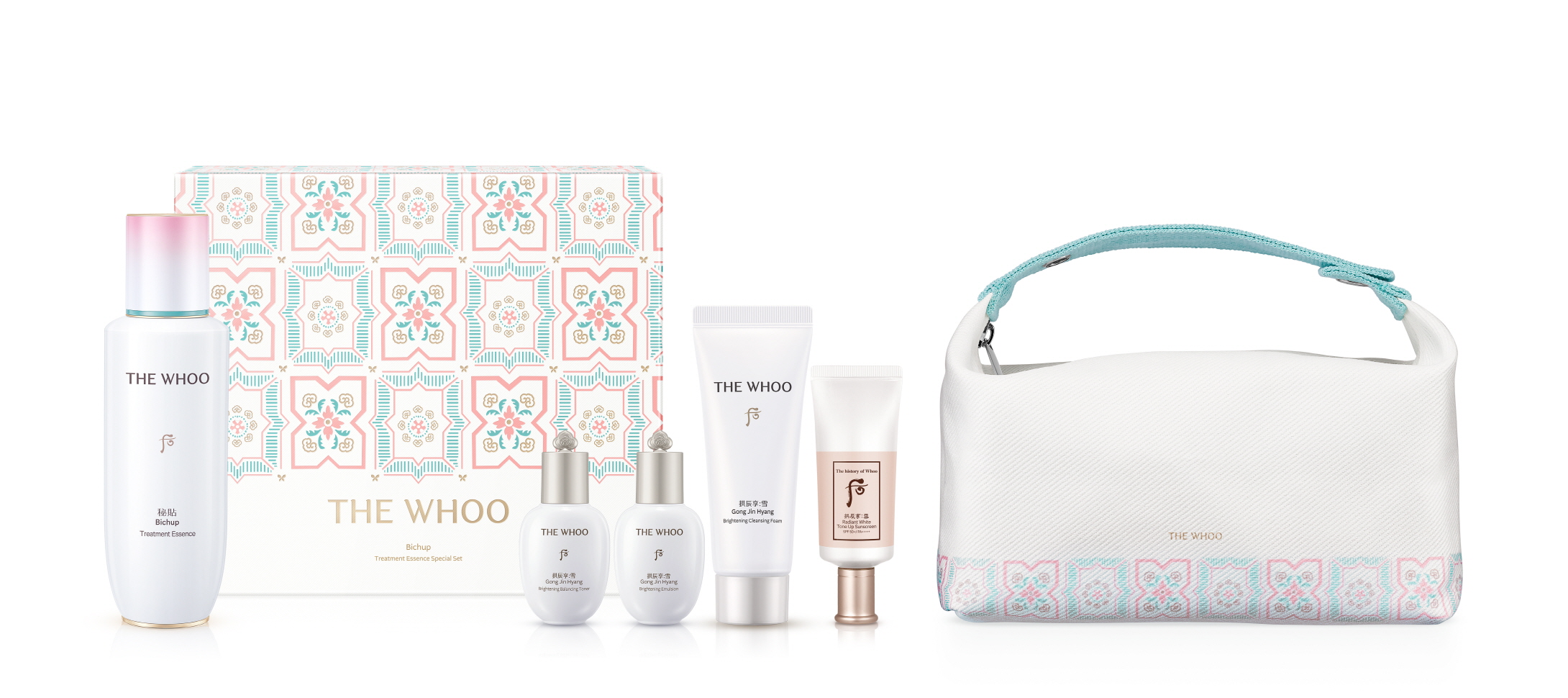 이번 에디션은 연꽃의 청량함을 듬뿍 느낄 수 있도록 비첩 순환 에센스를 기존 90 ml에서 130 ml로 증량한 대용량 제품으로 구성했다. 여기에 ‘공진향: 설’ 라인의 미백 밸런싱 토너(20 ml)와 미백 에멀전(20 ml), 청안 클렌징 폼(40 ml), 미백 톤업 선(25 ml) 등도 만날 수 있다.