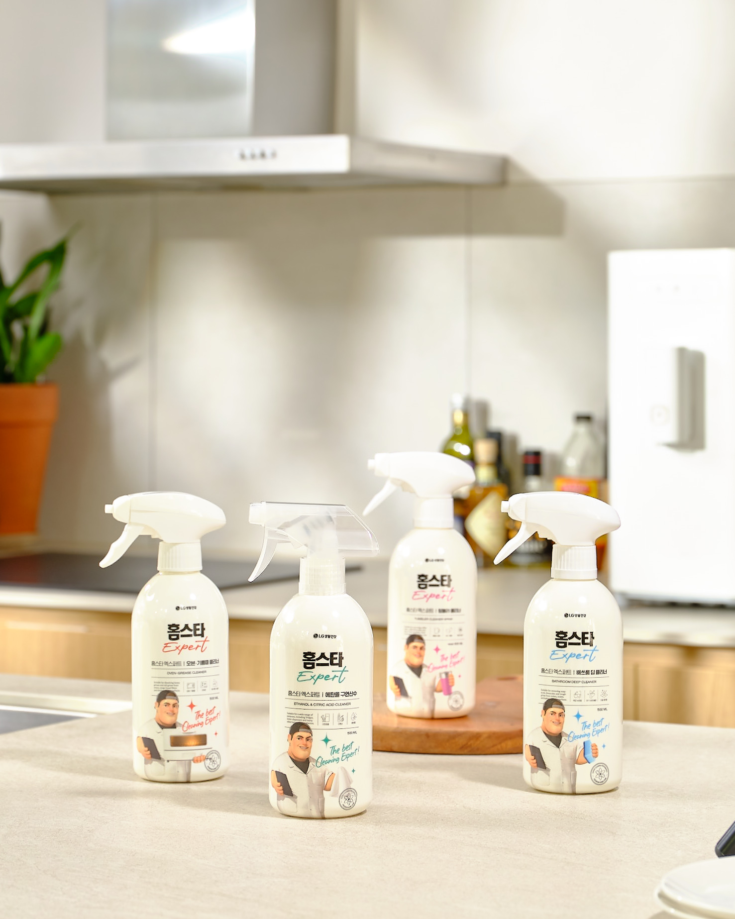 홈스타 엑스퍼트 라인은 정수기, 냉장고, 변기, 비데 등 가전제품을 전문적으로 청소·관리하는 가전 케어 매니저들의 노하우를 담아 만들었다. 락스 대신 에탄올, 구연산, 베이킹소다 등을 적절히 배합해서 케어 매니저들처럼 용도에 따라 전문적으로 청소할 수 있는 4종의 제품들로 구성했다.