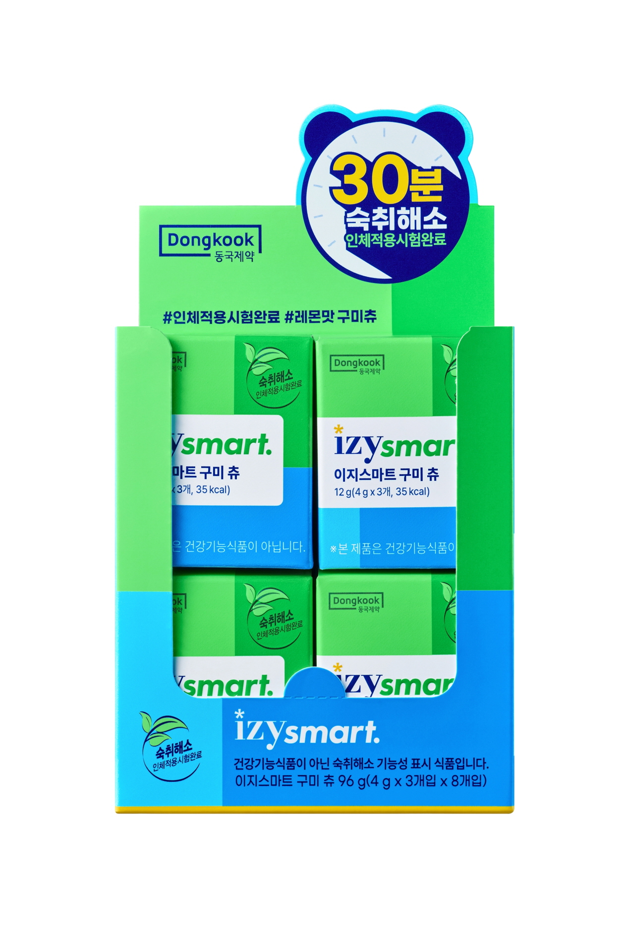 편의점에서 판매되는 ‘이지스마트 구미츄’는 동국제약 구강용해 필름 제형 숙취해소제 ‘이지스마트 필름’ 구미형으로, 음주 전후 1~3개를 물 없이 간편하게 씹어 먹을 수 있어 섭취 편의성과 기호성을 모두 갖췄다.