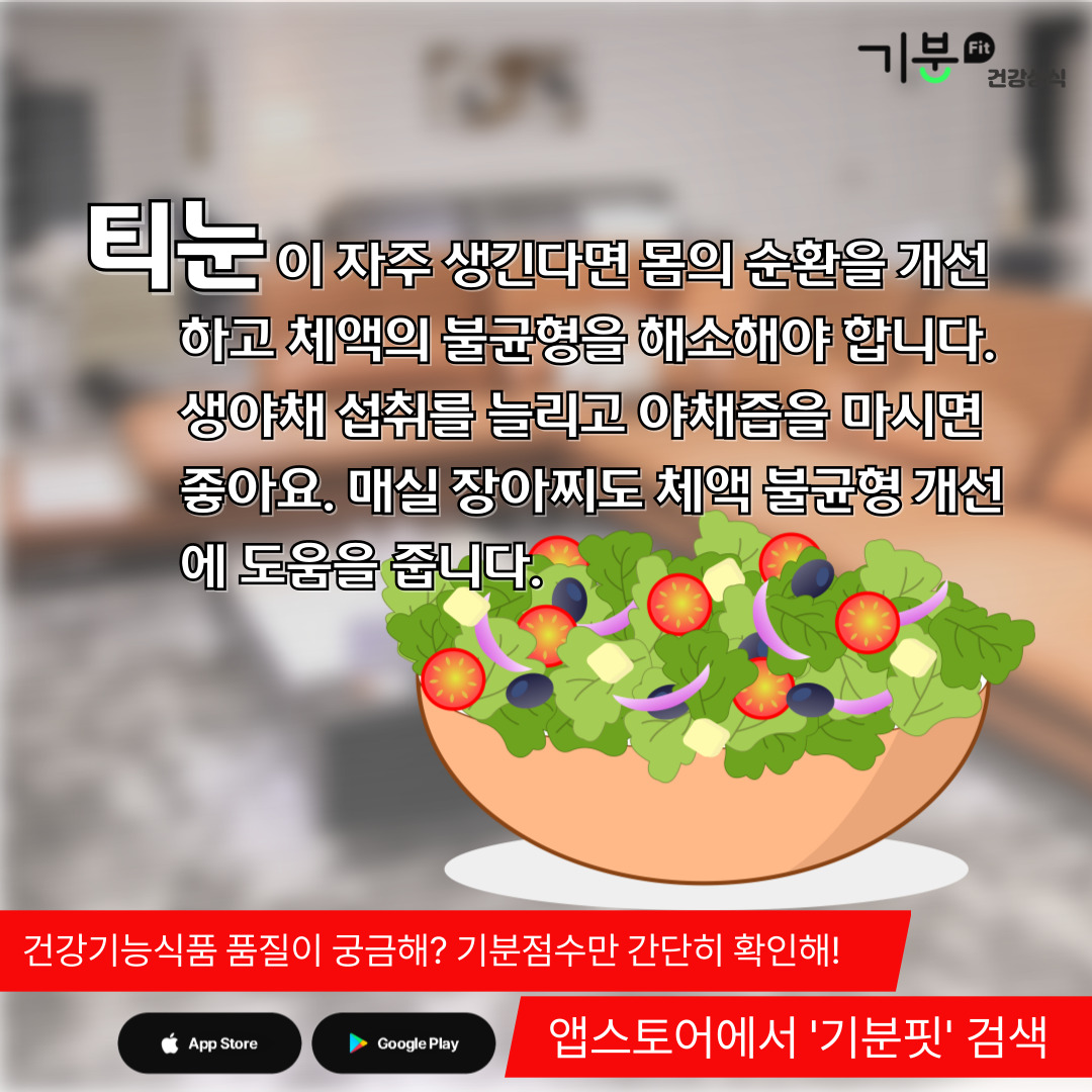 생야채 섭취를 늘리거나 야채즙을 만들어 마시면 도움이 된다.