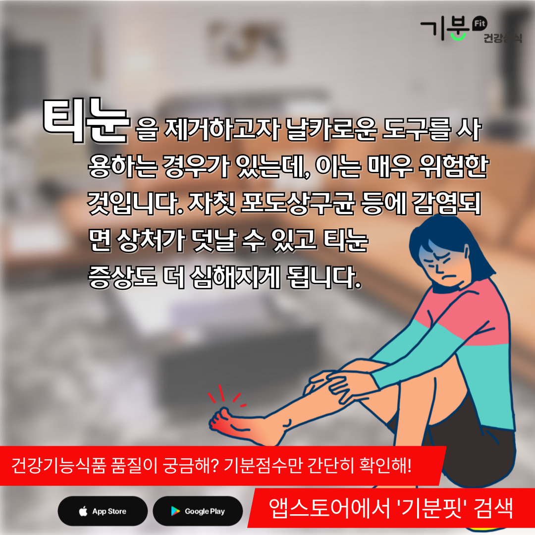 간혹 칼이나 날카로운 도구로 티눈을 떼어내려는 사람들이 있는데 이것은 좋지 않다.