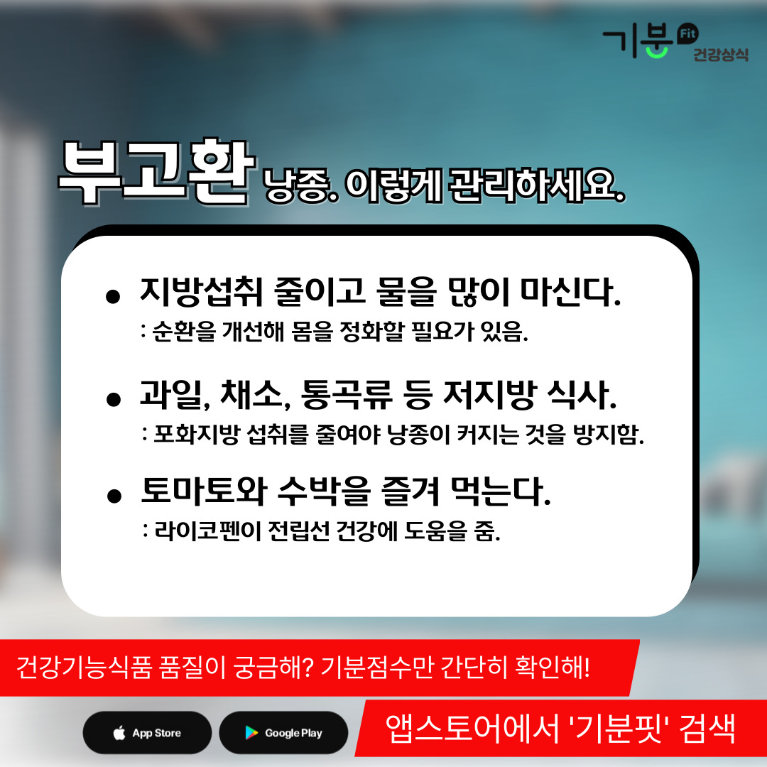 과일, 채소, 통곡류를 포함하는 저지방 식사를 하면 좋다.