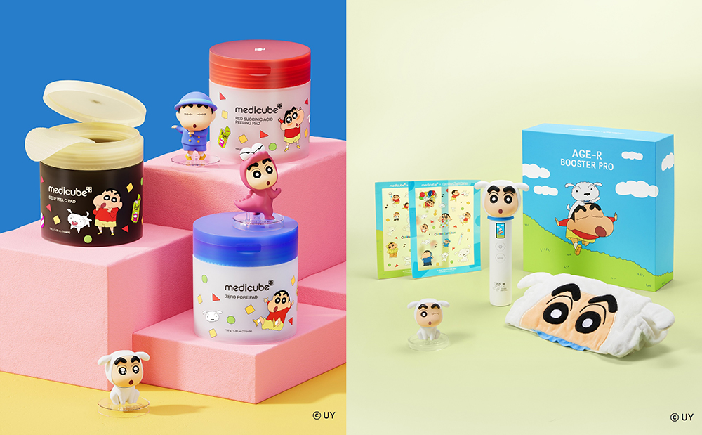 이번 협업 제품은 메디큐브의 주요 스킨케어 라인인 ‘제로모공패드’, ‘딥 비타 C 패드’, ‘레드 석시닉 애씨드 필링 패드’ 등 토너패드 3종과 뷰티 디바이스 브랜드 에이지알(AGE-R)의 ‘부스터 프로’, ‘부스터 프로 미니 플러스’로 구성됐다. 토너패드 3종은 27일부터, ‘부스터 프로’ 짱구 에디션은 28일부터 메디큐브 온라인몰에서 순차 공개되며, ‘부스터 프로 미니 플러스’는 11월 중 추가 공개될 예정이다. 사전 예약을 거쳐 11월 3일 정식 출시된다.