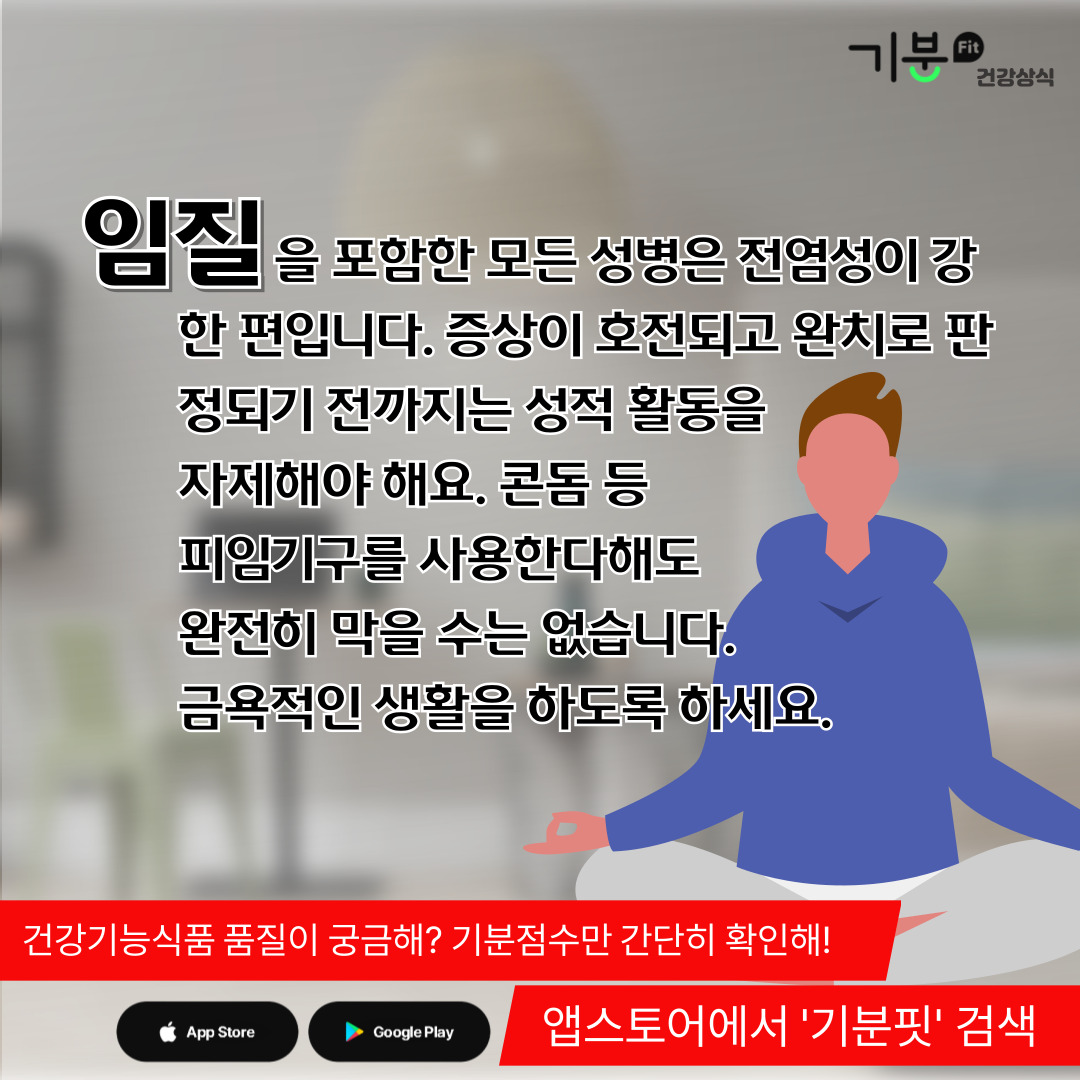 따라서 증상이 호전되고 완치로 판정될 때까지 성적 활동을 자제해야 한다.