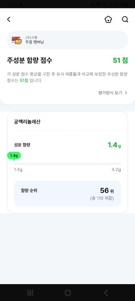 이렇게 산출한 결과 ‘푸응 팻버닝’의 주성분 함량 점수는 51점으로 나타났다.