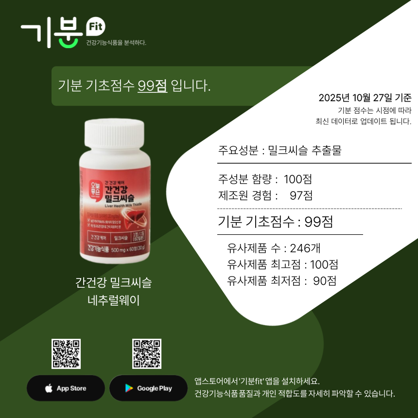 ‘오늘좋은 간건강 밀크씨슬’ 기초 점수 99점
