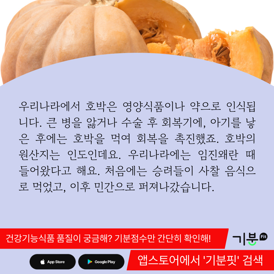 회복기 환자가 호박을 먹으면 회복 기간을 단축할 수 있다고 전해지는데, 호박의 영양성분을 보면 어느 정도 일리가 있는 이야기다.