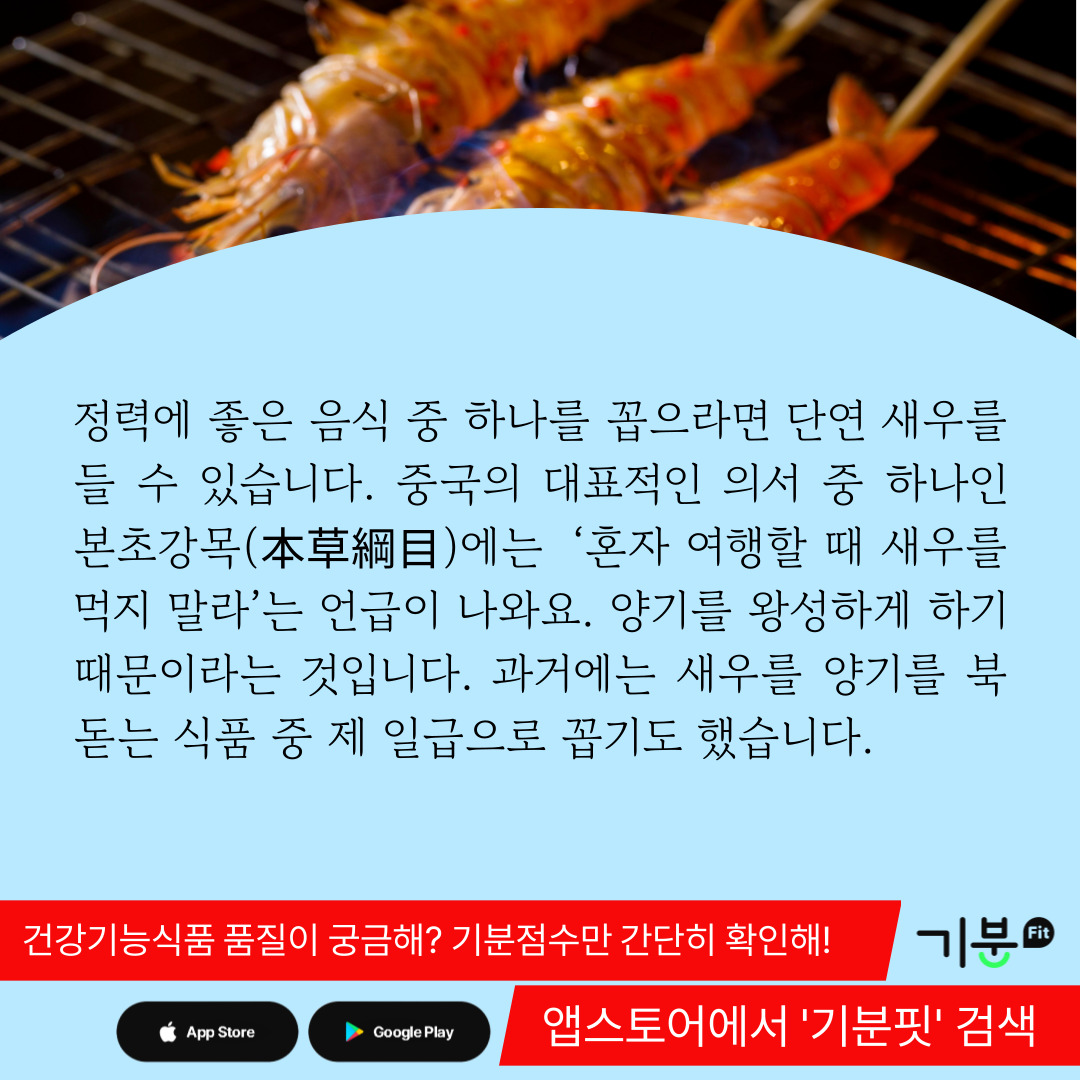 과거에는 새우를 양기를 북돋는 식품 중 제 일급으로 꼽기도 했다.