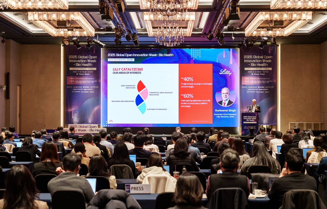 한국릴리(대표 존 비클)는 지난 12일부터 14일까지 서울 양재 엘타워에서 열린 ‘2025 글로벌 오픈이노베이션 위크 - 바이오헬스(Global Open Innovation Week - Biohealth)’에 참여해 릴리의 오픈이노베이션 전략과 협력 모델을 발표하고, 국내 바이오·메드텍 기업들과의 파트너링 미팅을 통해 심층적인 협업 기회를 모색했다고 17일 밝혔다.