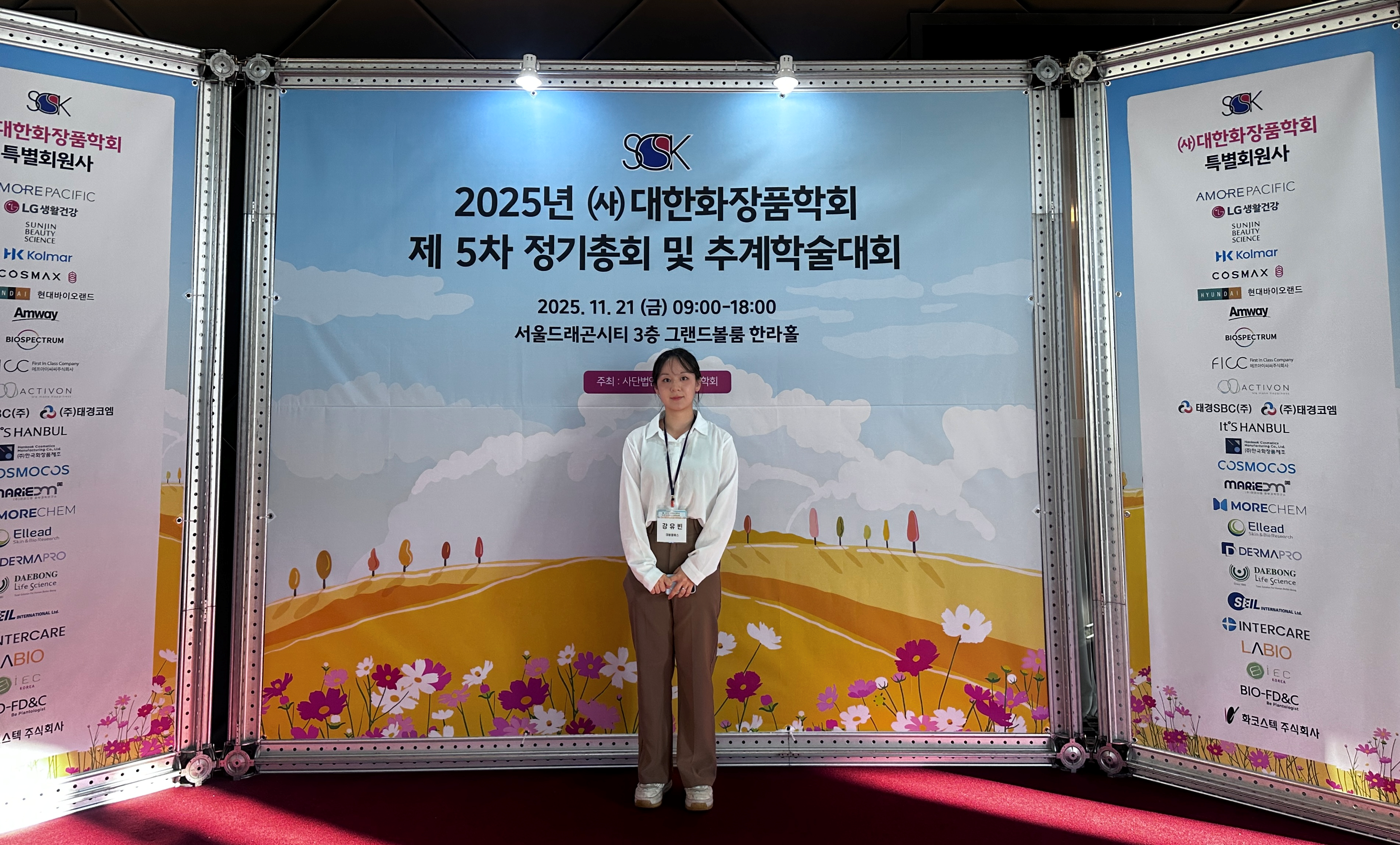 대봉엘에스 직원이 지난 21일 서울드래곤 ‘2025 대한화장품학회 추계 학술대회’ 현장에서 기념촬영을 하고 있다. ⓒ대봉엘에스