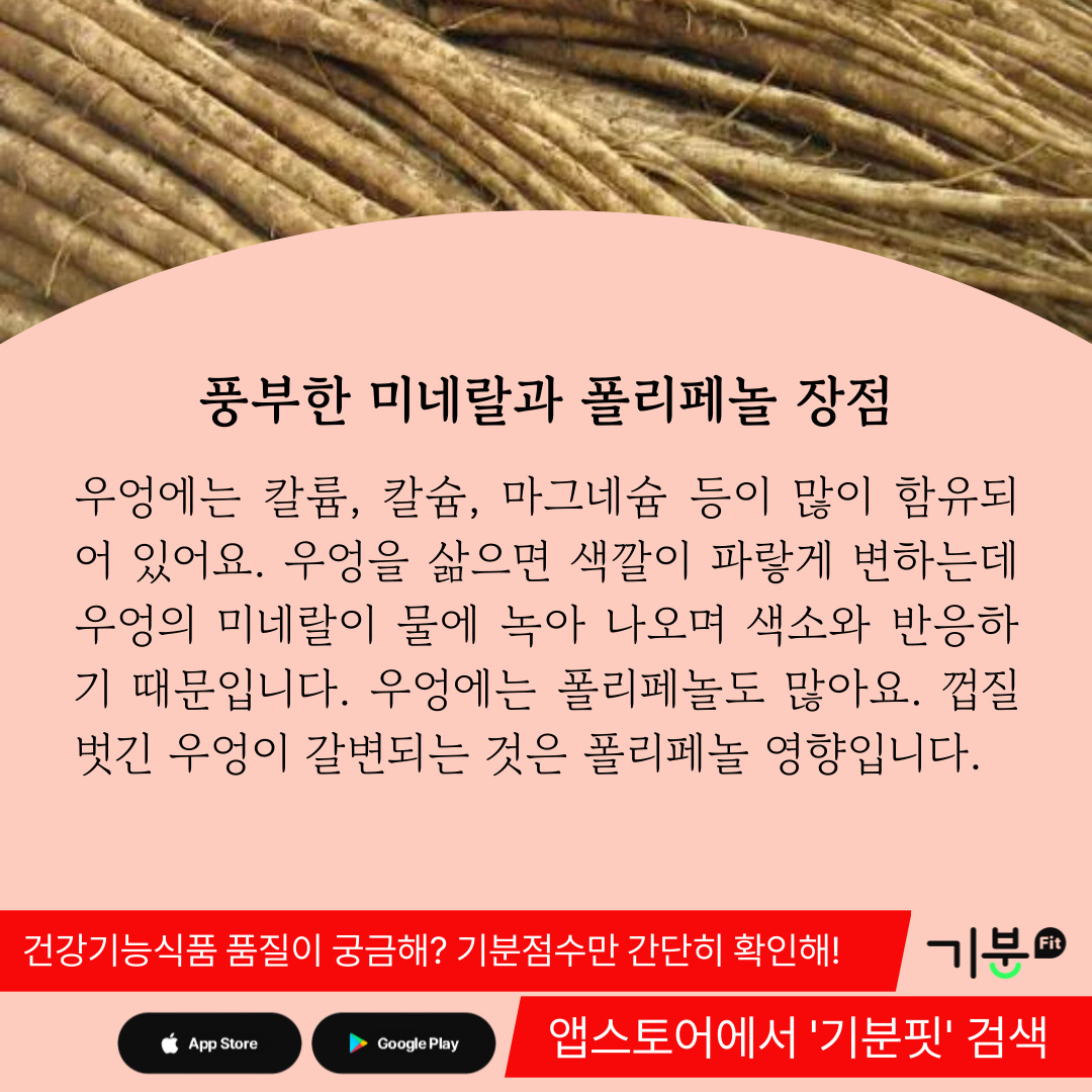 이는 우엉의 미네랄이 물에 녹아 나오면서 색소 성분과 반응하기 때문이다.