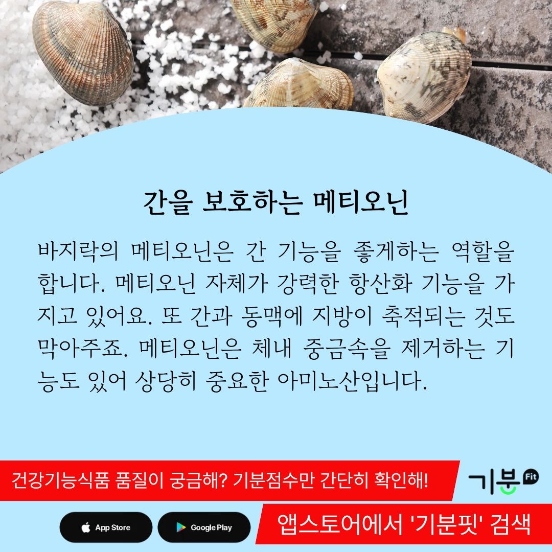 바지락의 메티오닌은 간 기능을 좋게하는 역할을 한다.