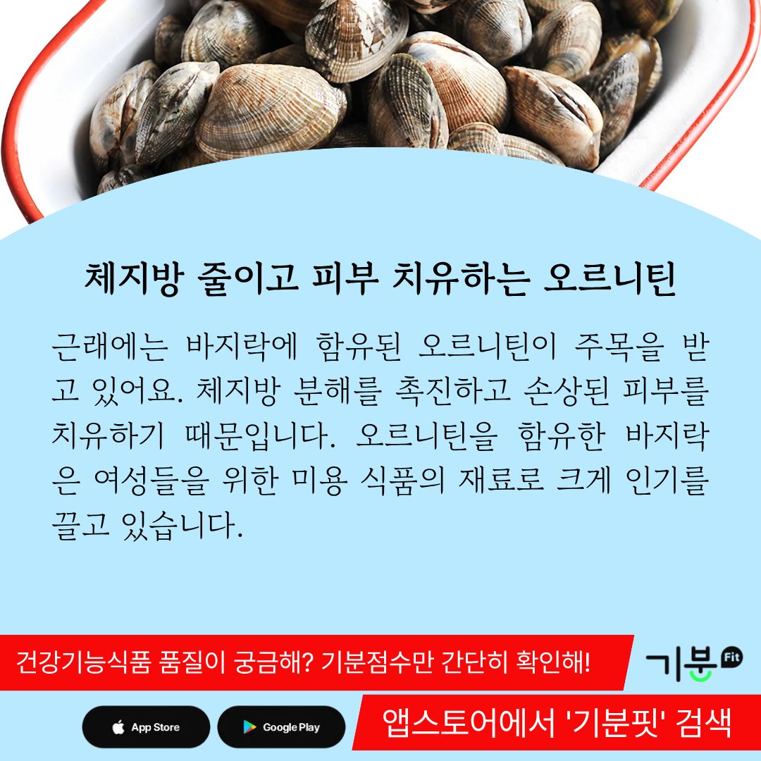 근래에는 바지락에 함유된 오르니틴이 주목을 받고 있다.