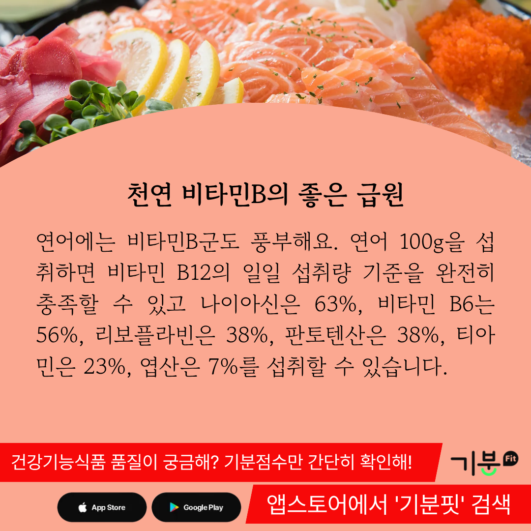 비타민B군은 소화 기능을 강화하여 영양흡수 효율을 높여주고 피로를 완화하는 등 좋은 기능을 할 수 있는데, 연어를 통해 천연 비타민B군을 섭취하면 이러한 기능을 기대할 수 있다.