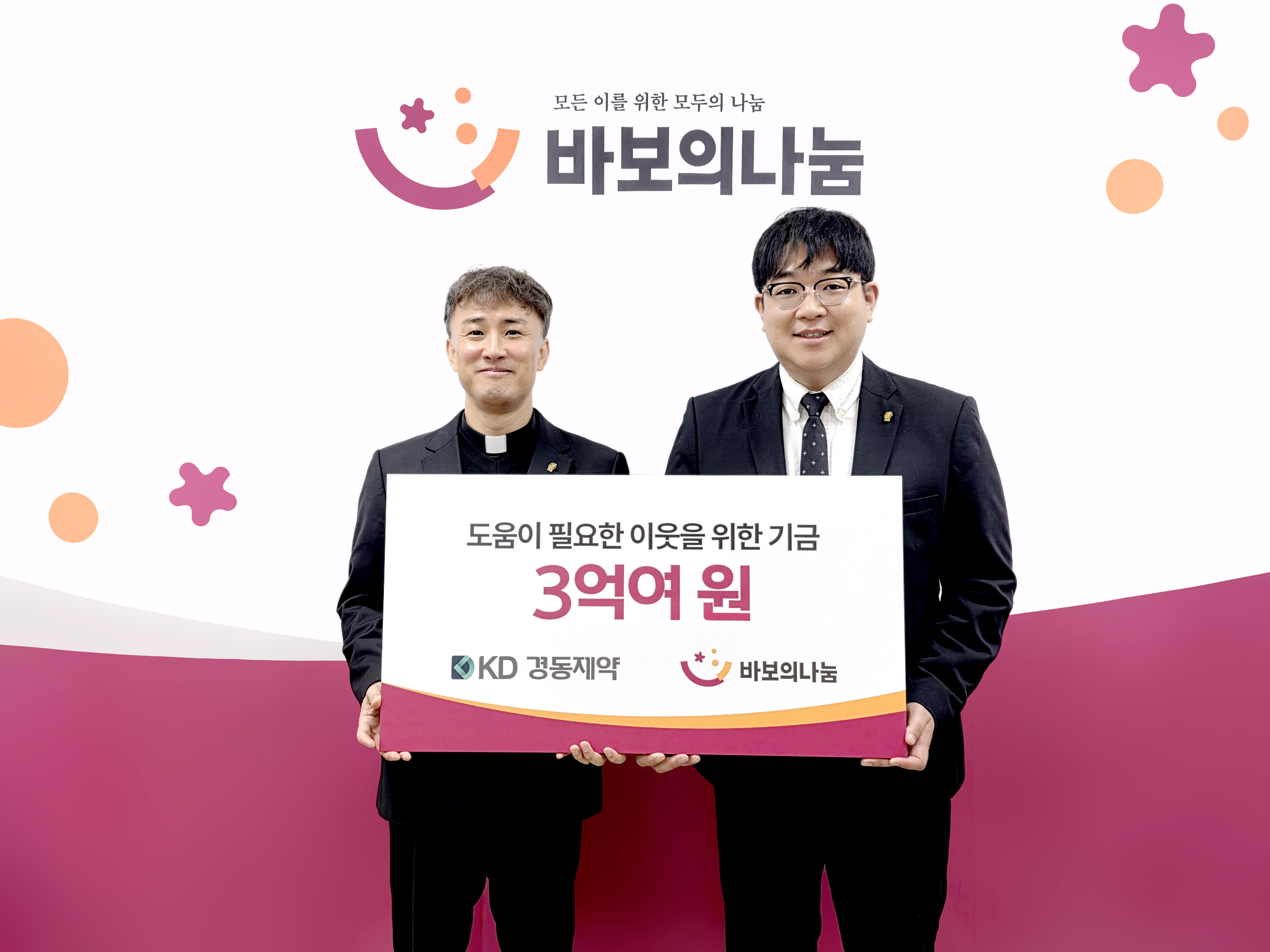 김인권 바보의나눔 상임이사(왼쪽)와 류기성 경동제약 대표(오른쪽). ©경동제약경동제약이 연말연시를 맞아 소외된 이웃을 위해 총 5억 5천여만 원 상당의 성금과 물품을 기부하며 따뜻한 나눔을 실천했다.