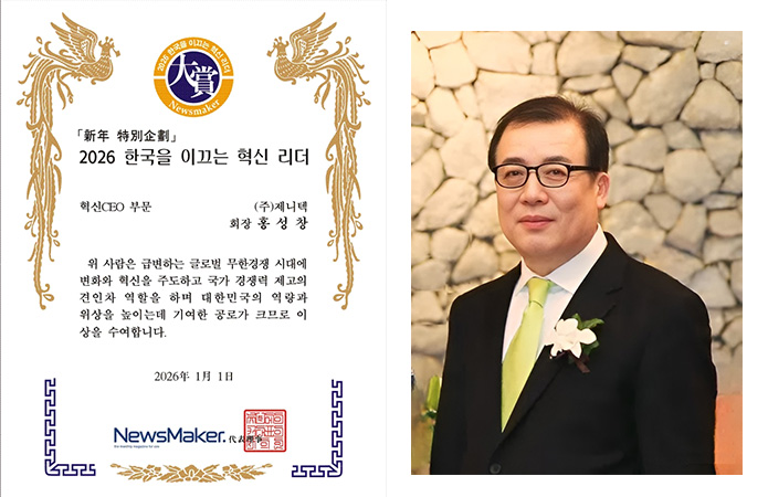 ㈜제니텍 홍성창 회장이 시사주간지 뉴스메이커 주관 ‘2026년 한국을 이끌 혁신리더’ 대상을 수상했다.