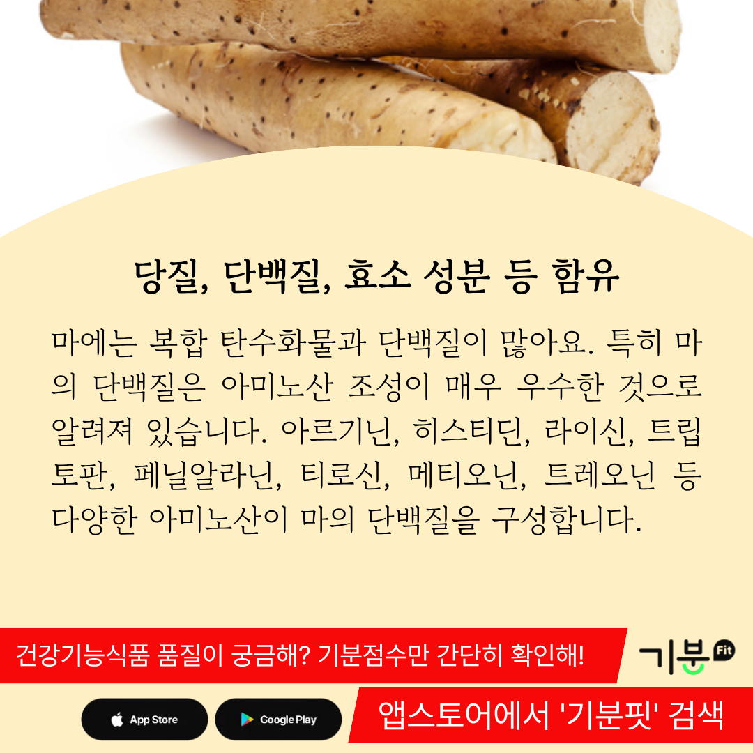 마를 먹으면 특유의 끈적한 점질을 느낄 수 있는데 당질과 단백질이 결합하면서 나타나는 특성이다.