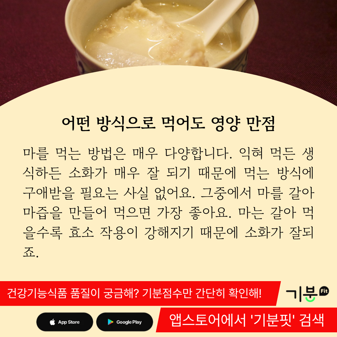 마는 갈아 먹을수록 효소 작용이 강해지기 때문에 소화가 잘된다.