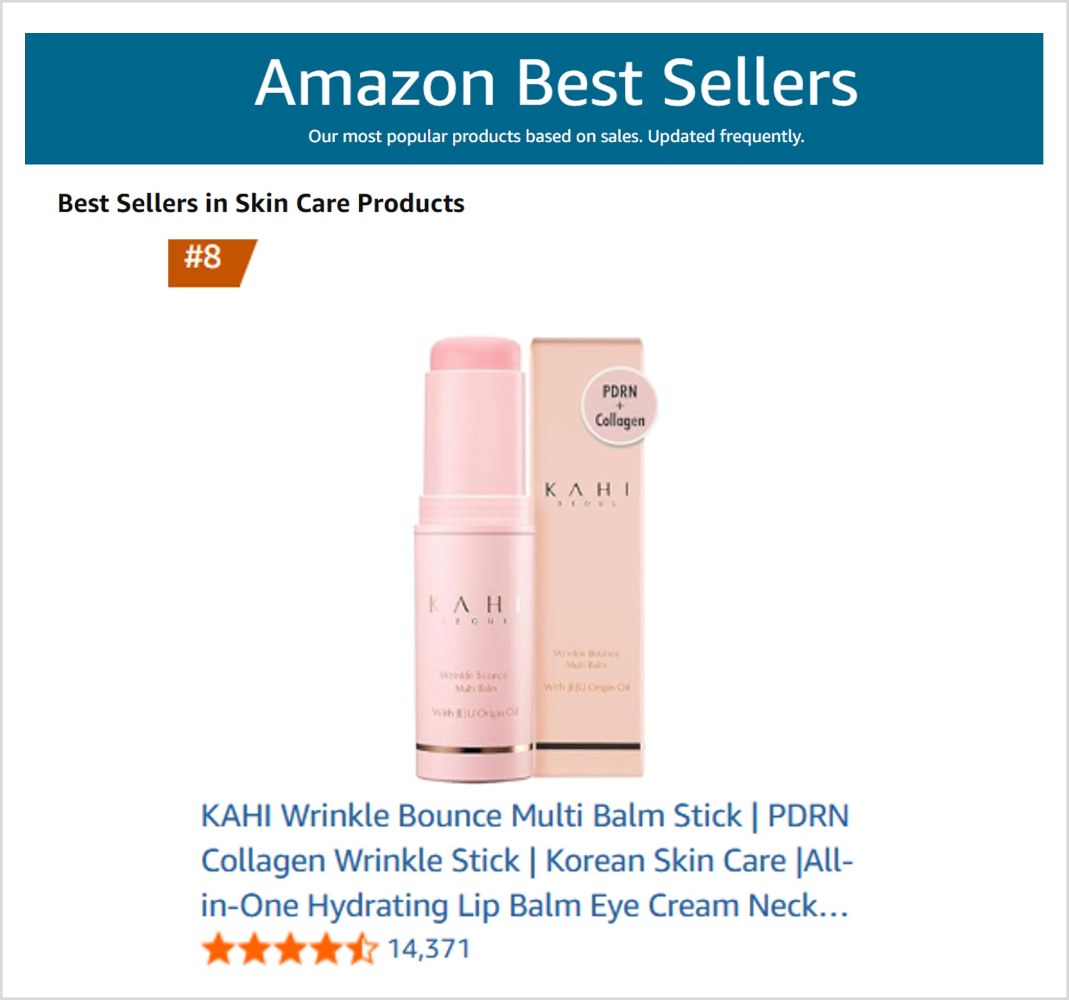 아마존 베스트 셀러 스킨케어 카테고리 8위를 차지한 가히 멀티밤. ⓒ코리아테크이번 순위 20위권에는 가히 멀티밤을 비롯해 바이오던스, 메디큐브, 디오디어리 등 국내 중소·인디 브랜드 제품이 다수 포함됐다. 아마존 뷰티 시장에서 K-뷰티 경쟁력이 이어지고 있다는 평가다.