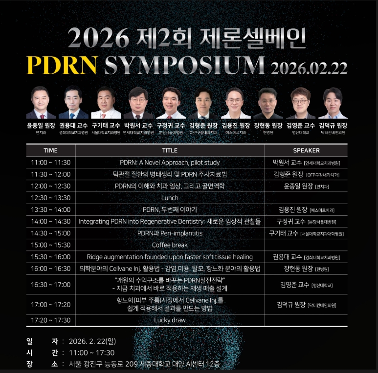 김덕규 제론셀베인 대표는 “PDRN은 치과 및 재생의학 전반에서 임상적 확장 가능성이 매우 큰 소재”라며 “이번 심포지엄은 단순한 이론 소개를 넘어 실제 임상 성과와 적용 노하우를 공유하는 자리로 의료진에게 실질적인 도움이 될 것”이라고 전했다.