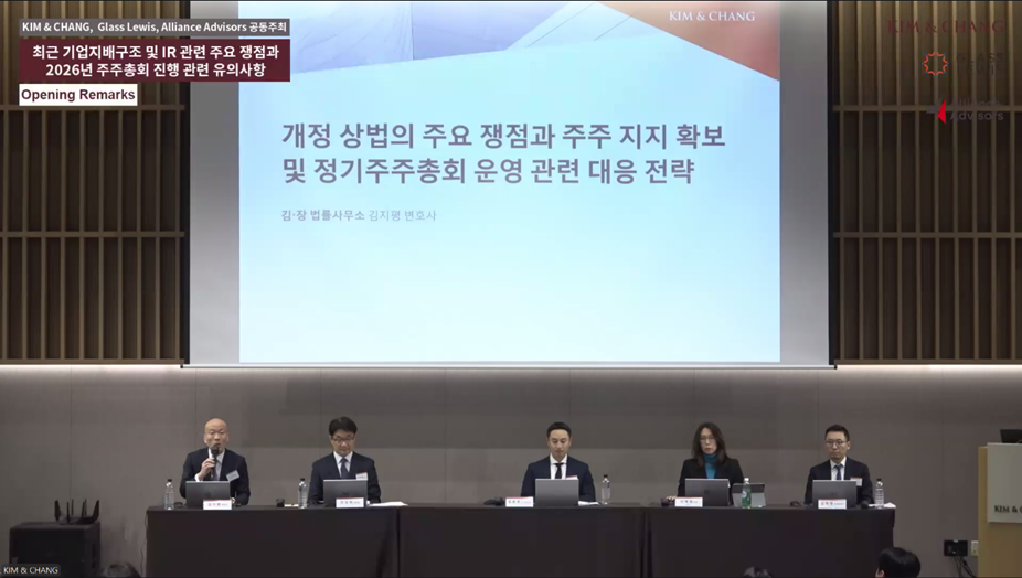 특히 상법 개정과 공시 강화 기조, 글로벌 기관투자자의 의결권 행사 기준 변화가 국내 기업지배구조에 미치는 구조적 영향을 다각도로 짚는 데 초점을 맞췄다.