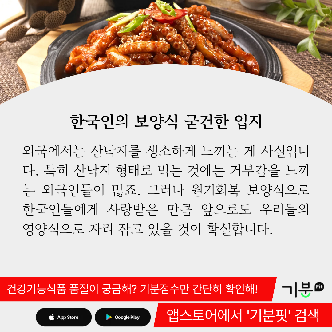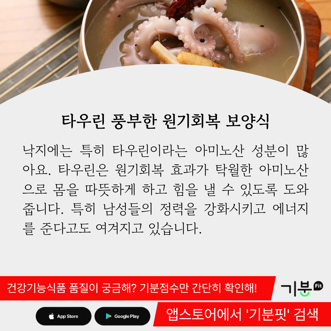 낙지가 보양식으로 각광 받는 것도 이러한 이유일 것이다.