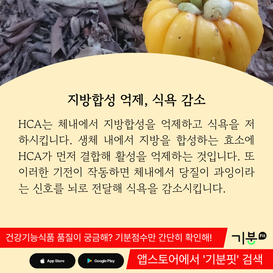 HCA는 체내에서 지방합성을 억제하고 식욕을 저하시킨다.