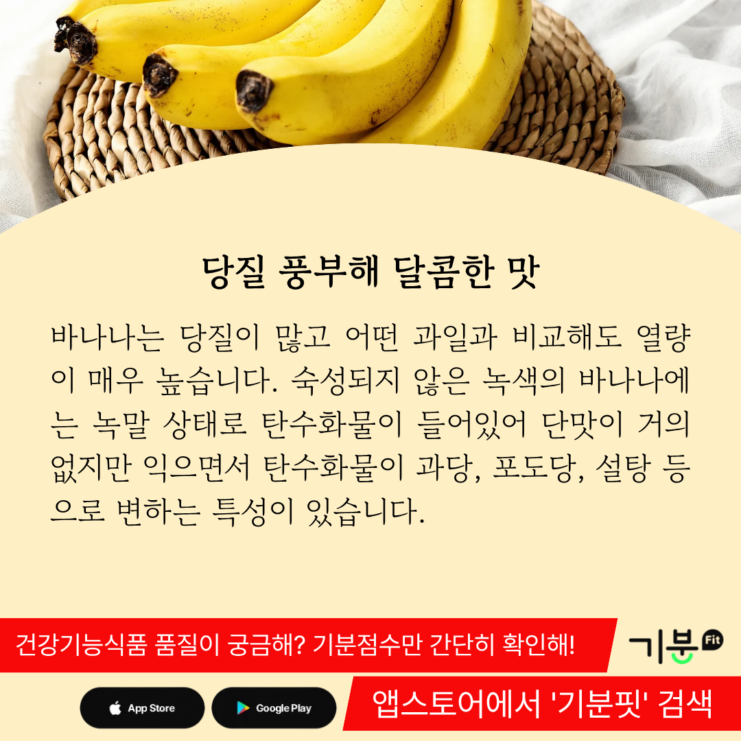 바나나는 과일 중 가장 높은 열량을 가지고 있을 뿐만 아니라 소화 잘되는 음식이기 때문에 영양식으로 각광 받아왔다.