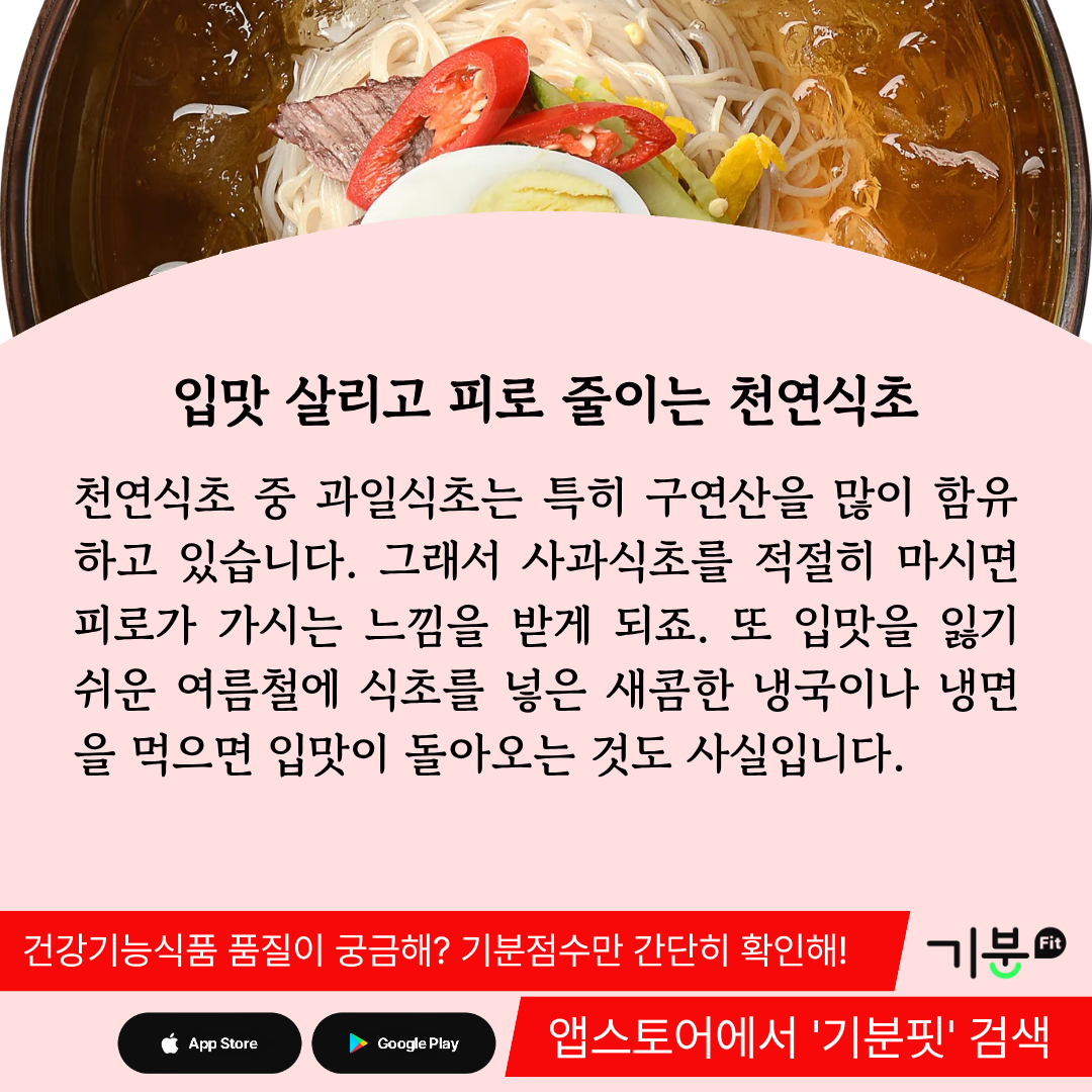 또 입맛을 잃기 쉬운 여름철에 식초를 넣은 새콤한 냉국이나 냉면을 먹으면 입맛이 돌아오는 것도 사실이다.