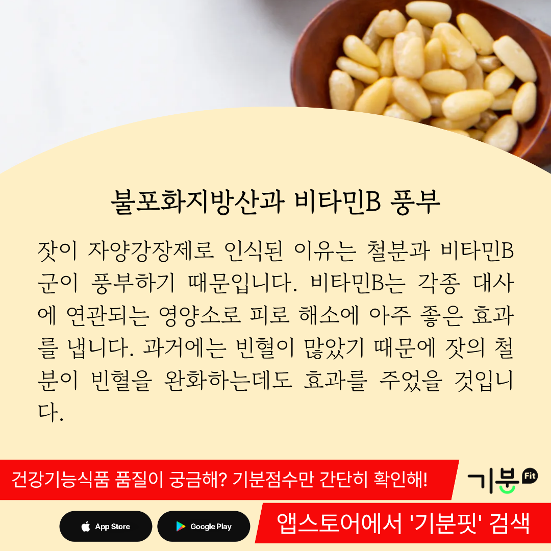 잣이 자양강장제로 인식된 이유는 철분과 비타민B군이 풍부하기 때문이다.