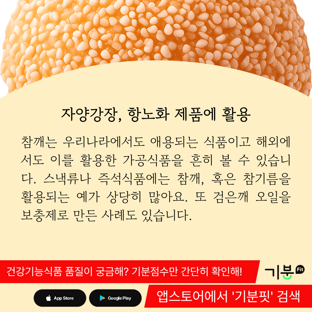 또 참깨 중의 검은깨 오일을 보충제 형태로 만들어 건강관리에 활용할 수 있도록 한 제품들도 있다.