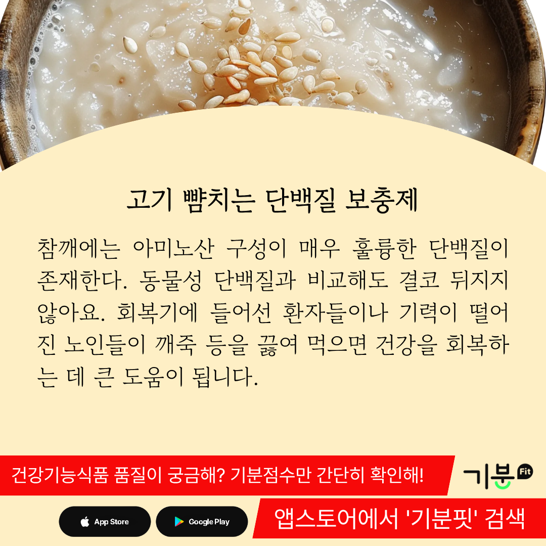 참깨의 질 좋은 아미노산 구성 때문에 회복기에 들어선 환자들이 깨죽 등을 끓여 먹으면 건강을 회복하는 데 큰 도움이 된다.