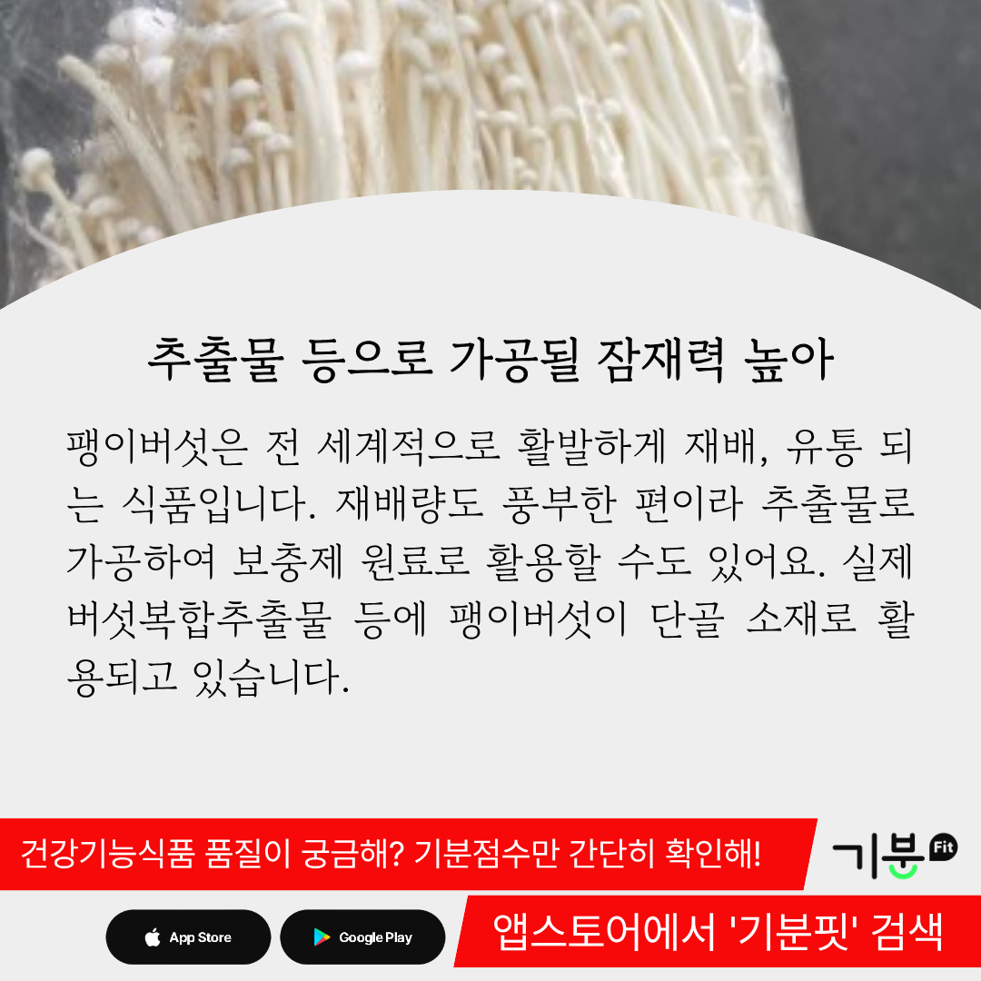 실제로 버섯복합추출물 등에 팽이버섯이 단골 소재로 활용되고 있다.