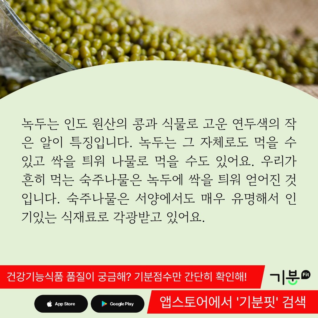 청포묵, 녹두 빈대떡, 녹두죽, 숙주나물 등 우리에게 친숙한 음식이 모두 녹두에서 비롯된 것이다.