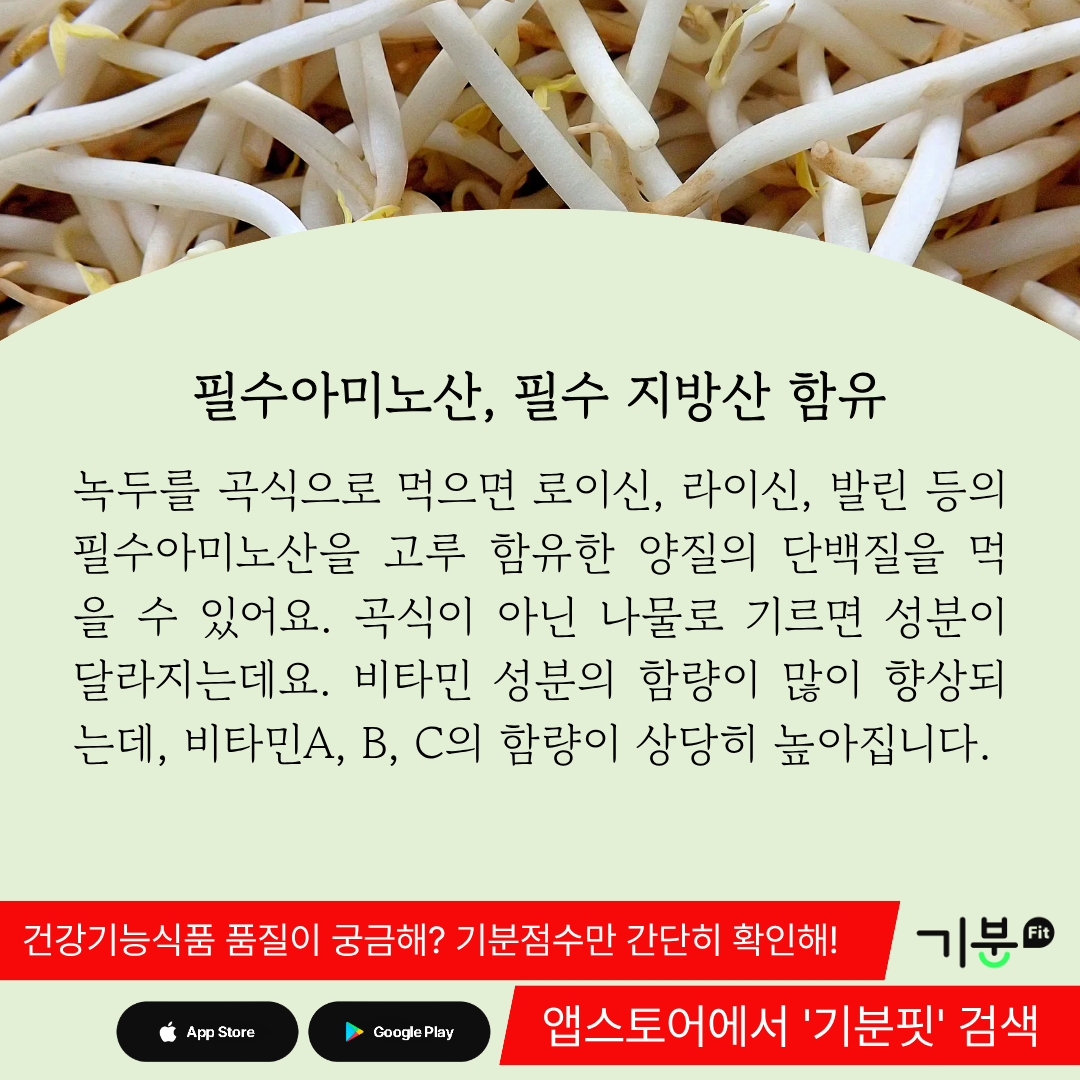 우리가 흔히 먹는 숙주나물은 녹두에 싹을 틔워 얻어진 것이다.