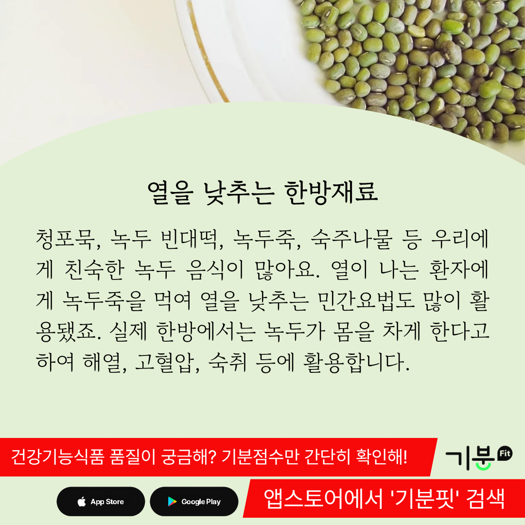 실제로 한방에서는 녹두가 몸을 차게 하는 성질이 있다고 하여 해열, 고혈압, 숙취 등에 활용하는 사례가 많다.