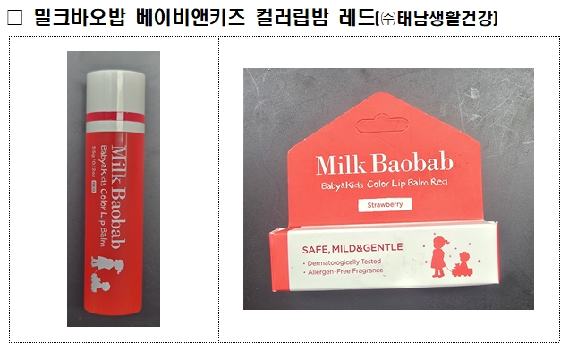 스칼렛레드가 검출된 문제의 제품은 △쌍빠 어딕트 프렌치립오일 04. 히비스커스(투앤업), △밀크바오밥 베이비앤키즈 컬러립밤 레드(태남생활건강) 2종이다.
