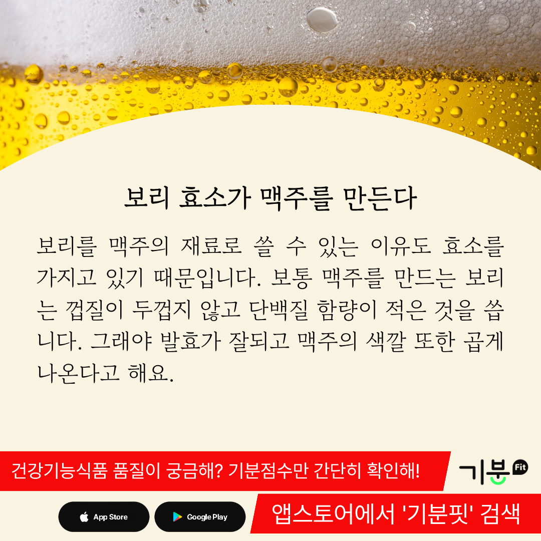 보통 맥주를 만드는 보리는 껍질이 두껍지 않고 단백질 함량이 적은 것을 쓴다.
