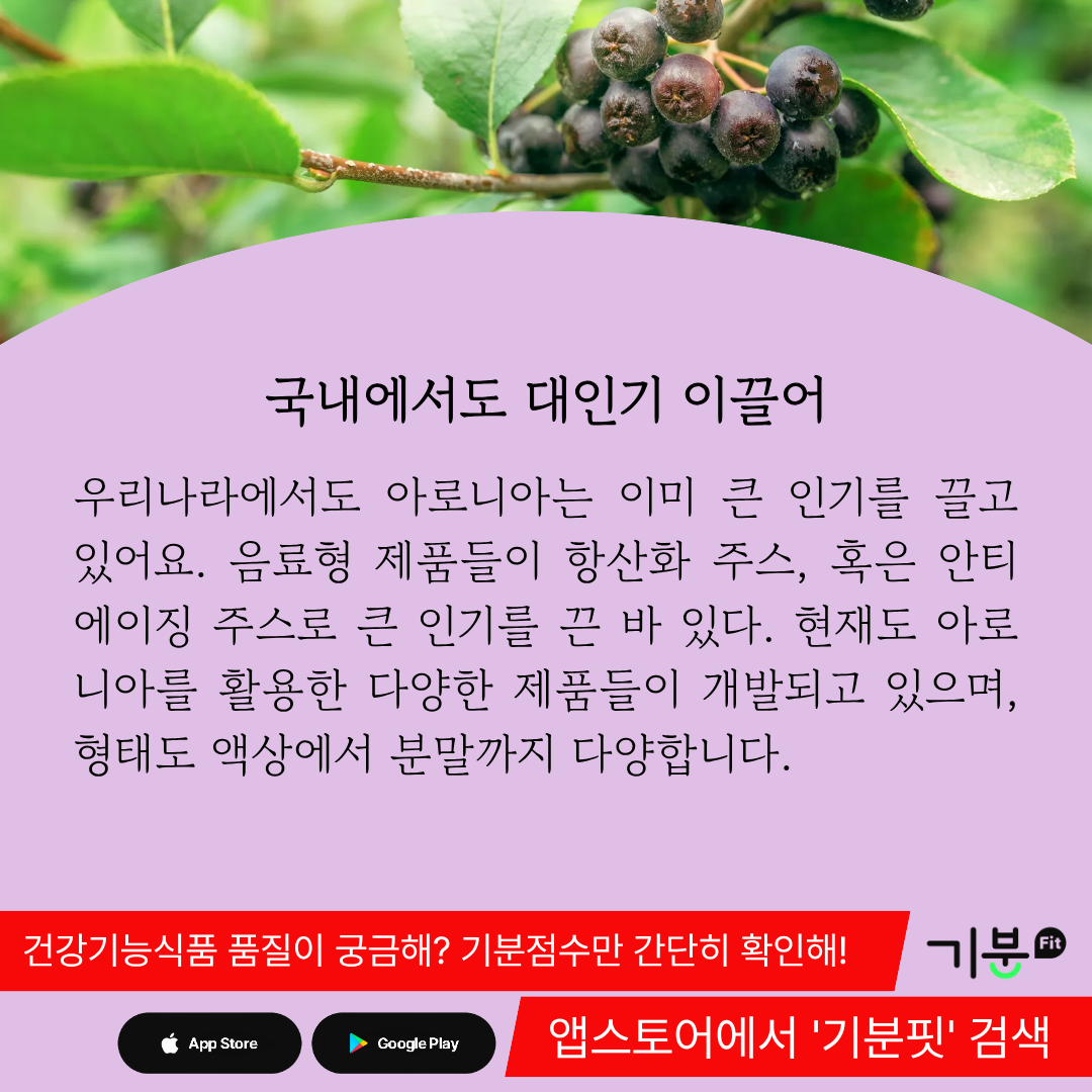 아로니아에 함유된 풍부한 안토시아닌 성분이 다양한 건강 증진 기능을 발휘하기 때문.