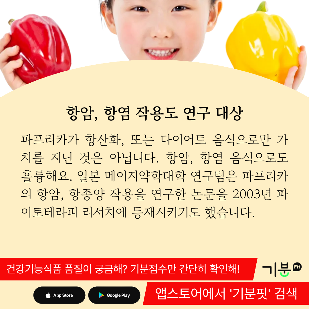 일본 메이지약학대학 연구팀이 파프리카의 항암, 항종양 작용을 연구한 논문을 2003년 파이토테라피 리서치에 등재시킨 경우도 있었다.