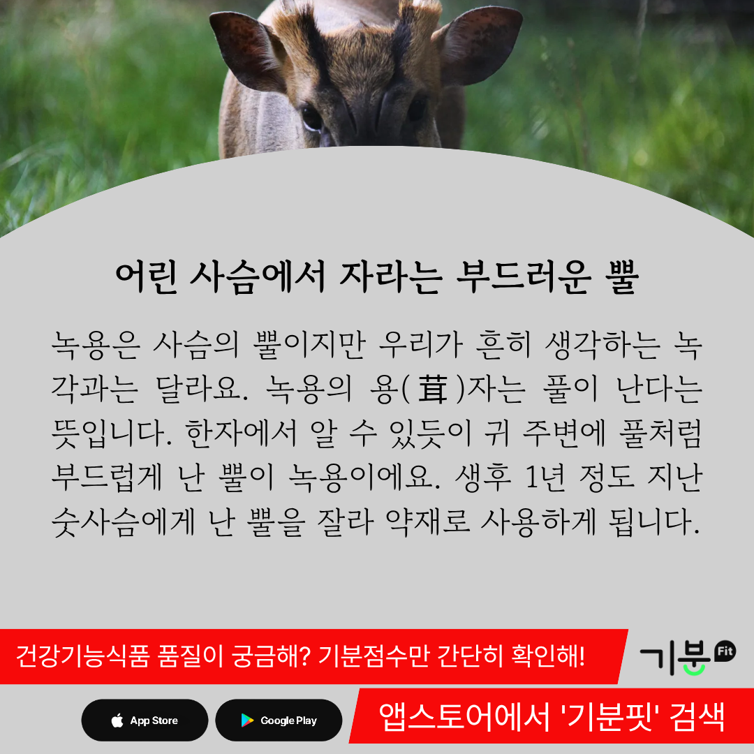 한자에서 알 수 있듯이 귀 주변에 풀처럼 부드럽게 난 뿔이 녹용이다.