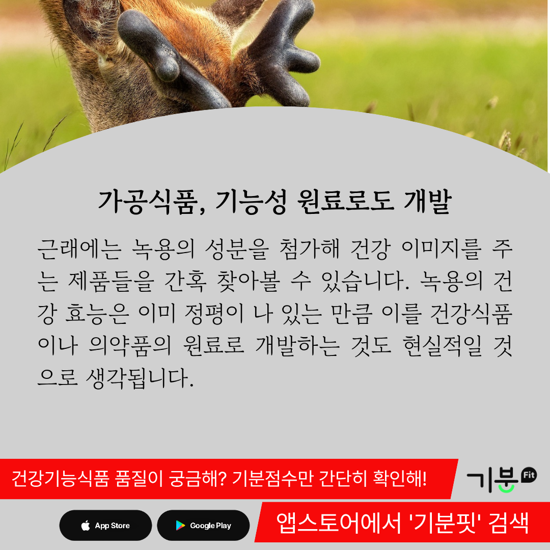 녹용의 건강 효능은 이미 정평이 나 있는 만큼 이를 건강식품이나 의약품의 원료로 개발하는 것도 현실적일 것으로 생각된다.