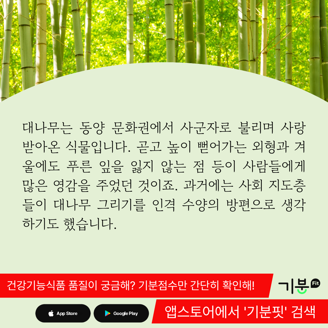 대나무는 동양 문화권에서 사군자로 불릴 정도로 오랜 기간 사랑 받아온 식물이다.