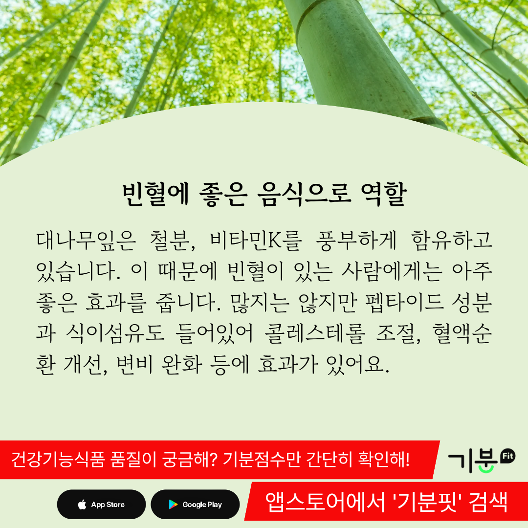 대나무잎은 철분, 비타민K를 풍부하게 함유하고 있다.