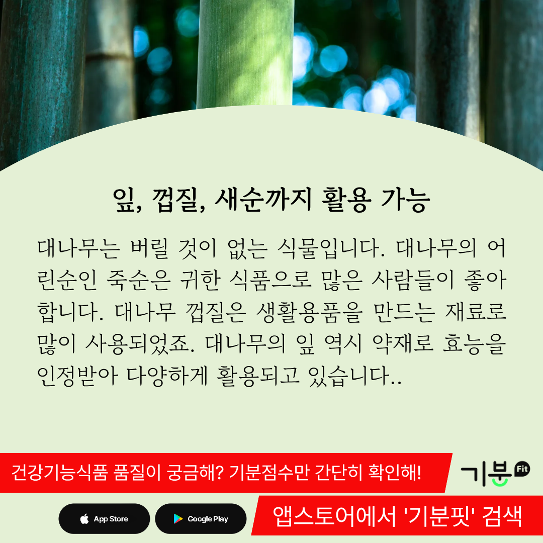 또 한방에서는 해열, 기침, 가래 등 감기에 대나무잎을 활용했다.