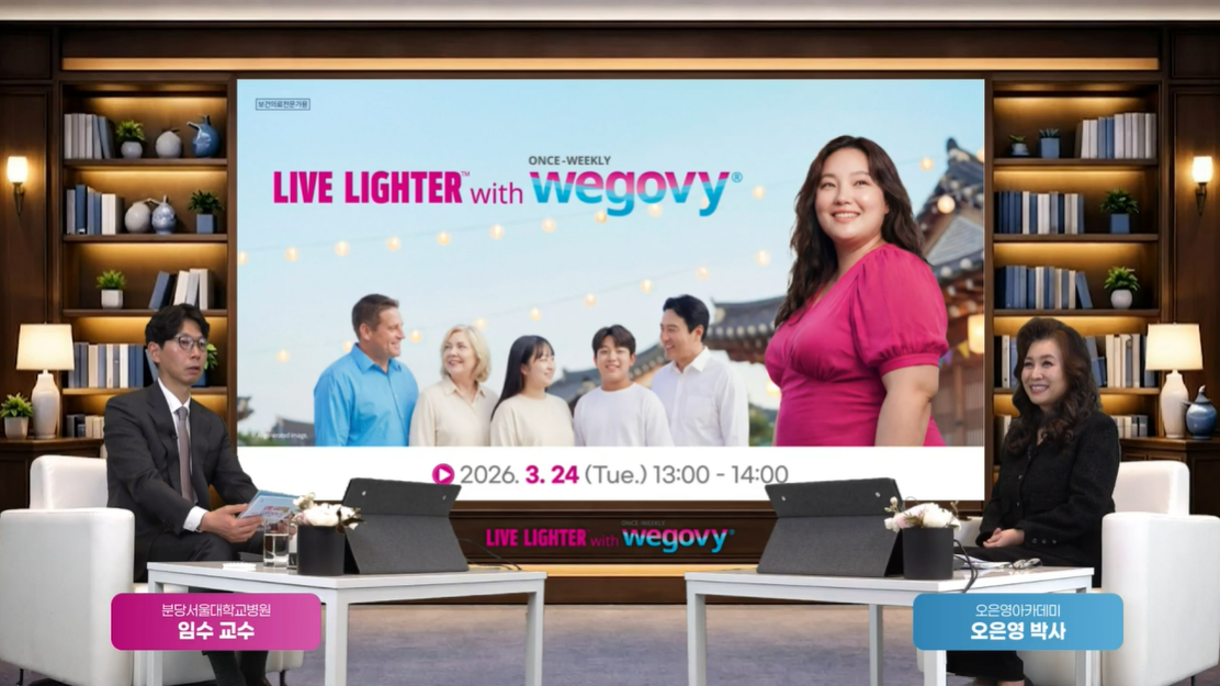 이번 웨비나는 오은영아카데미 원장 오은영 박사와 분당서울대학교병원 내분비대사내과 임수 교수가 참여해, 비만이 단순한 의지의 문제가 아닌 뇌·심리·대사 신호가 복합적으로 작용하는 만성질환임을 강조하고, 위고비®(성분명 세마글루티드)를 통한 과학적 치료의 임상적 의미를 심층적으로 논의했다.