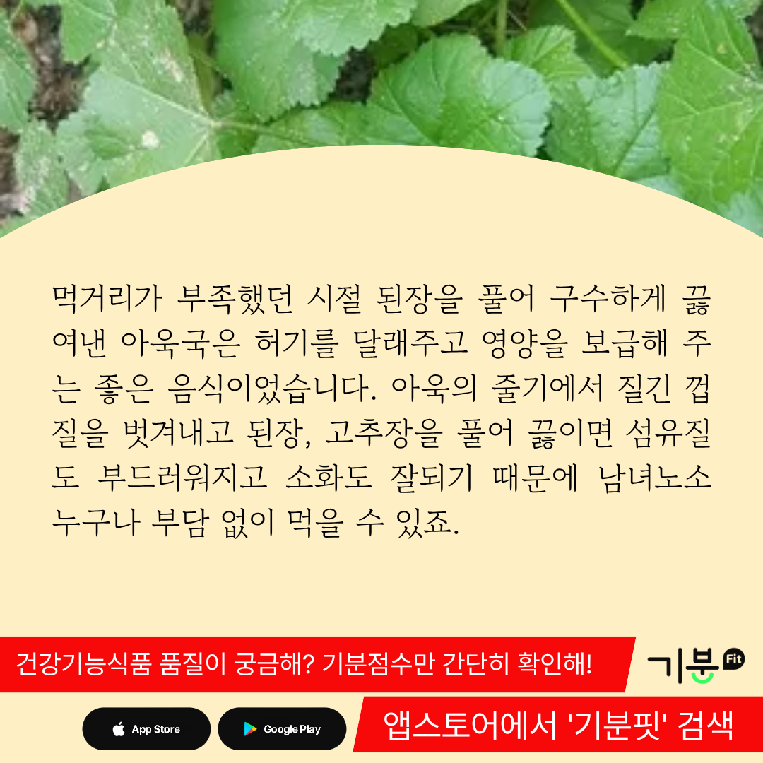 학술적으로 따져봐도 아욱은 영양이 매우 뛰어난 식물성 식품이다.