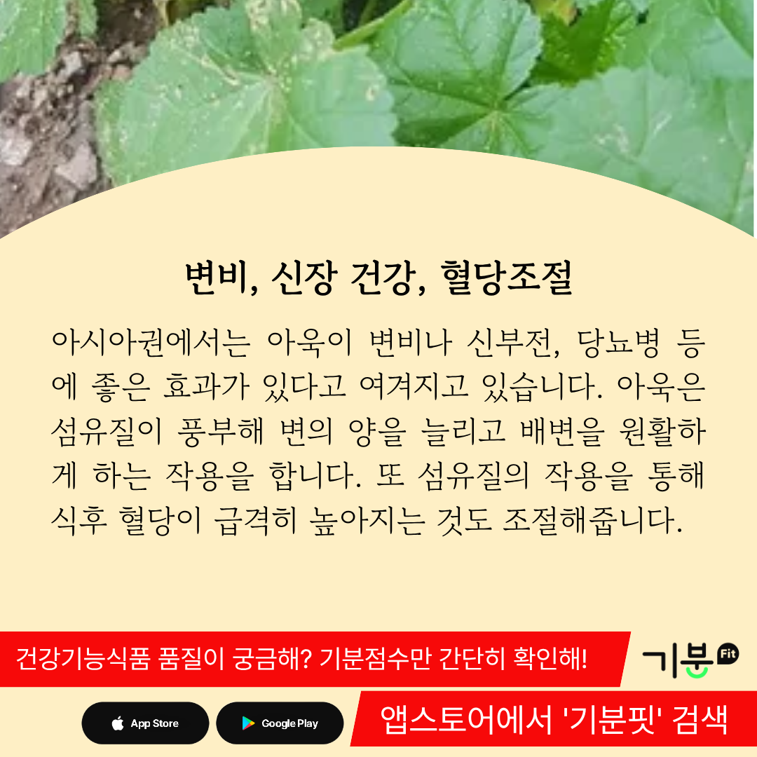 이는 신장의 기능이 강화되기 때문인데 실제로 민간에서는 신장이 좋지 않을 때 아욱을 활용하곤 했다.