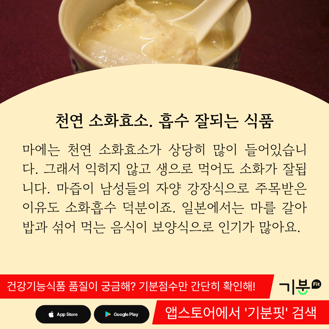 마즙이 남성들의 자양 강장 특별식으로 주목받은 이유도 소화흡수가 잘 되기 때문이다.