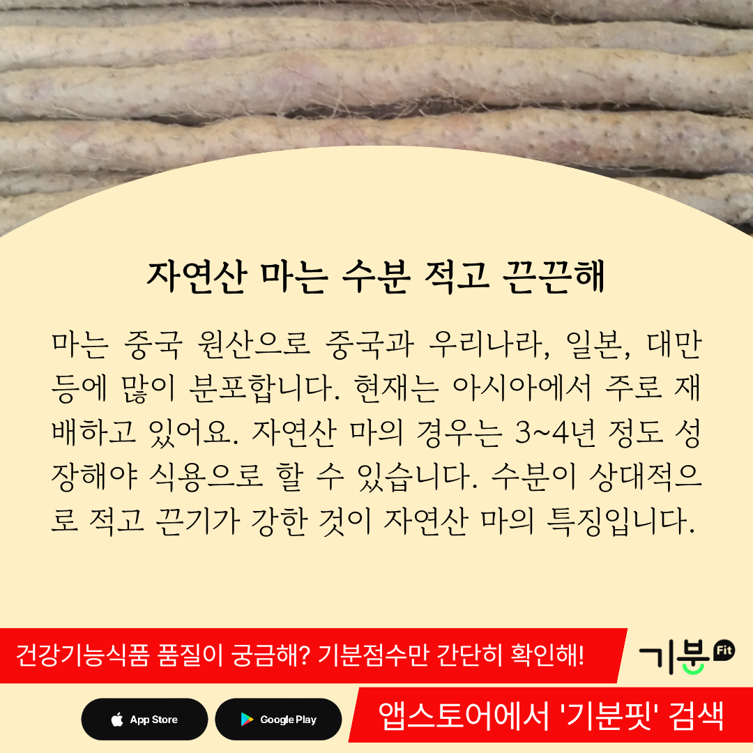 수분이 상대적으로 적고 끈기가 강한 것이 자연산 마의 특징이다.